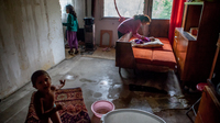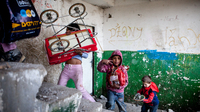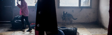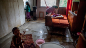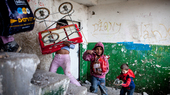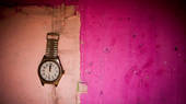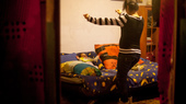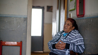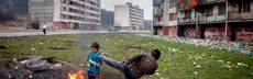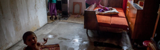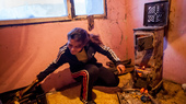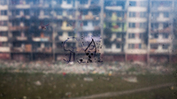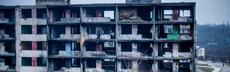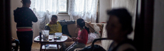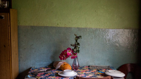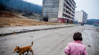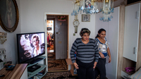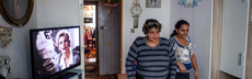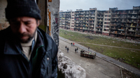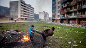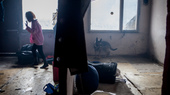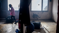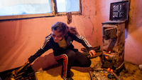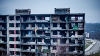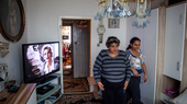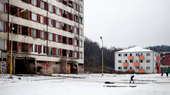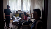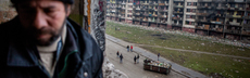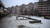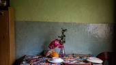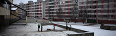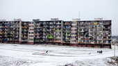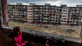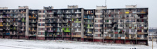 Much of the housing complex is without windows, and all kinds of metal, such as that in railings and doors, has been removed. Inside the flats the residents try to live as well as they can under the circumstances.