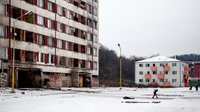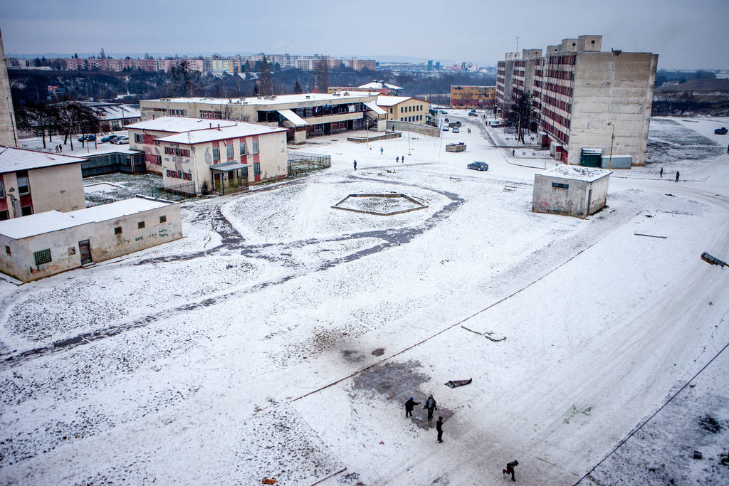 Built in the late 1970s for army and police personnel and de- signed for 2,500 residents, the crumbling tower blocks now officially house 6,542 (12/2015) registered inhabitants and almost all of them are of Roma ethnicity, many living without electricity or running water.